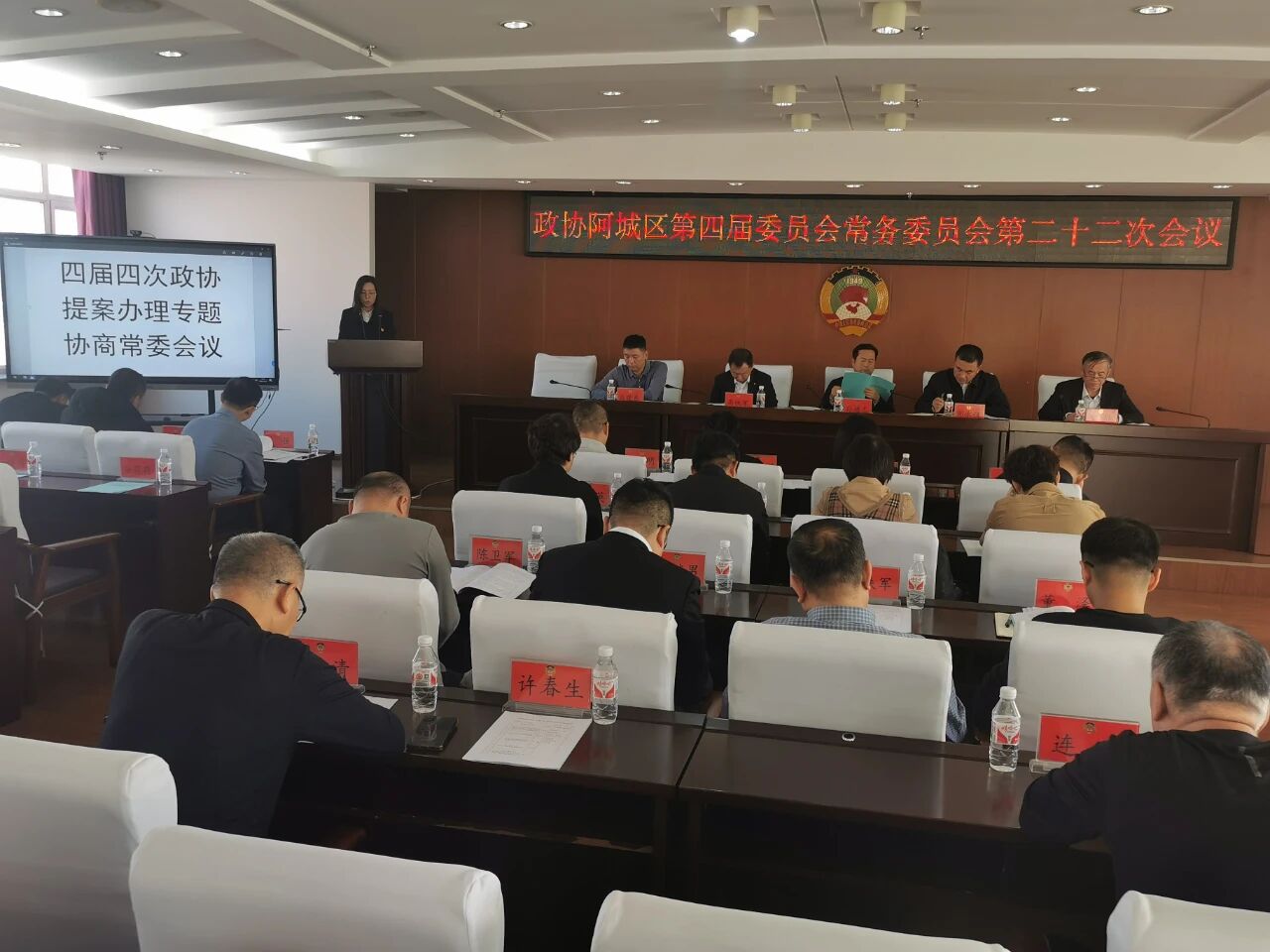 近日,阿城区政协召开第四届第二十二次常委会会议,区政协主席孙德志、副主席关伟、高铁军,秘书长马晓东参加会议。