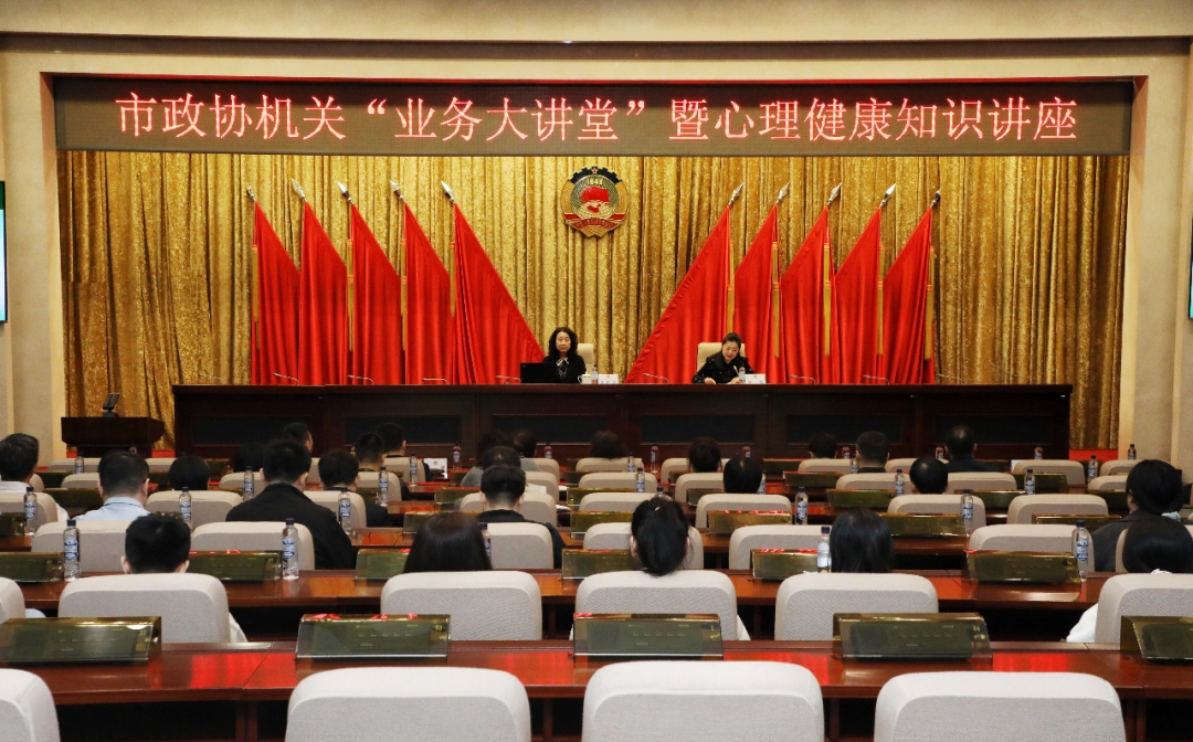 为认真落实习近平总书记在全国两会期间关于健康中国建设重要讲话精神,扎实推进高素质政协干部队伍建设,切实提升干部职工心理健康素养,按照市政协主席、党组书记孙珅同志部署要求和机关工会年度工作计划安排,3月27日,市政协机关举办“业务大讲堂”暨心理健康知识讲座,特邀国家二级心理咨询师、黑龙江大学心理健康教育中心主任李巾英教授,以《守护心理健康赋能履职初心》为题为机关全体干部职工作专题辅导。市政协机关党委专职副书记、机关工会主席高巍主持讲座。